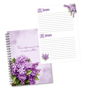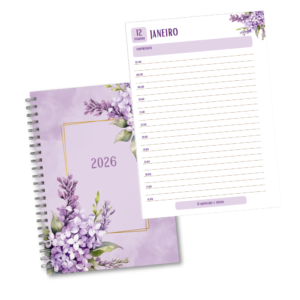 Arquivo Digital Agenda 2026 A5 Flores Lilás 1DPP