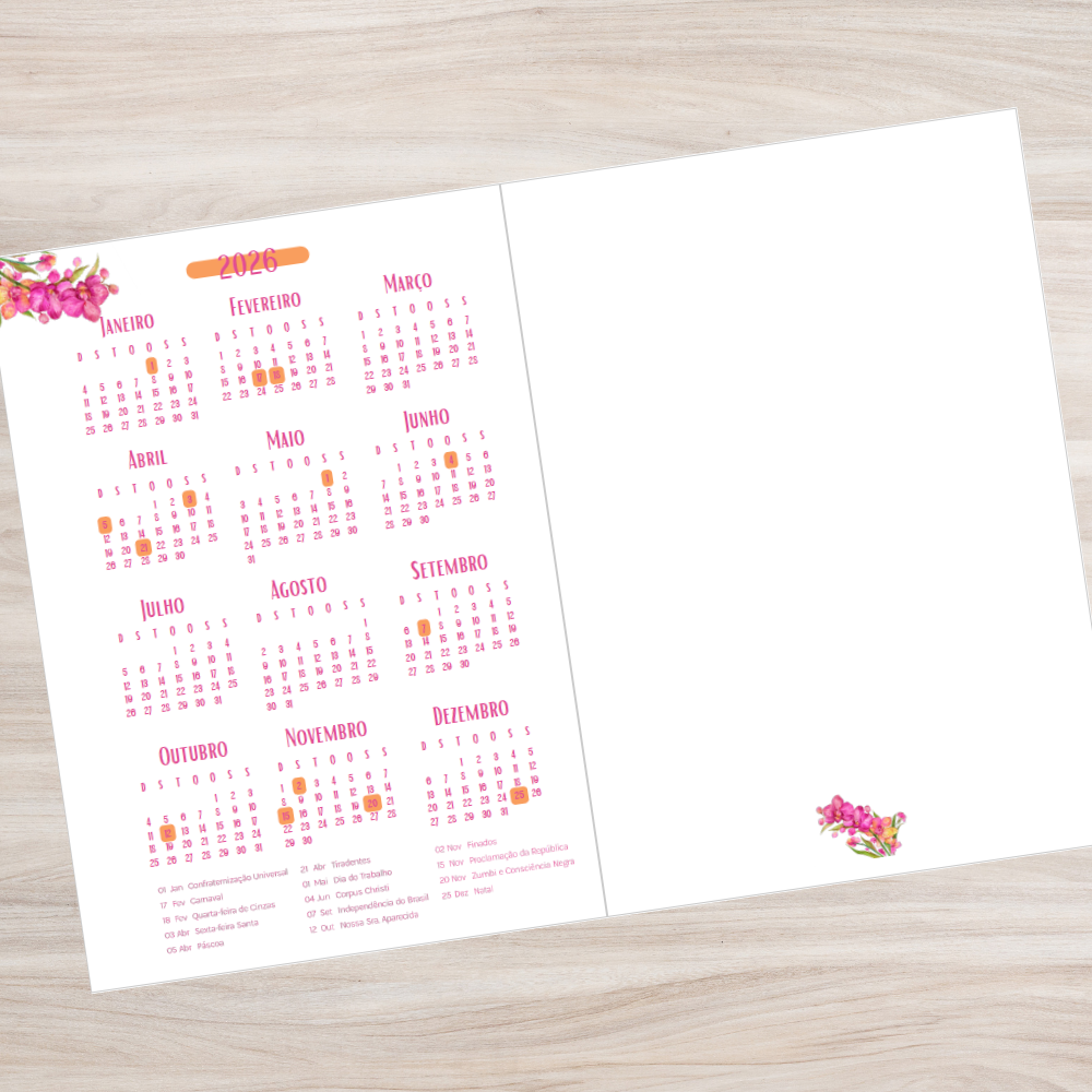 Arquivo Digital Agenda 2026 A5 Orquídea 1DPP